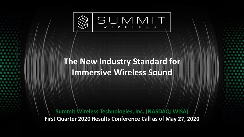 The New Industry Standard for Immersive Wireless Sound Summit Wireless Technologies, Inc. (NASDAQ: WISA) First Quarter 2020 Results Conference Call as of May 27, 2020