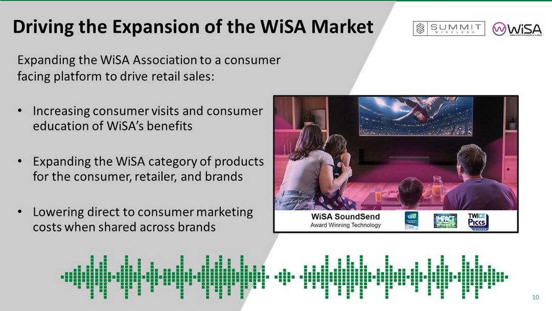 9 NASDAQ: WISA True Cinema Sound in Your Home in Minutes Consumer Benefits Your Smart TV WiSA SoundSend Amazing Speakers Works with 100’s of millions of TVs with ARC/ eARC Universal transmitter easily connects to your TV and sends HD audio to speakers Amazing WiSA Certified speakers from great brands Quick Set Up Immersive Sound No Speaker Wires No AV Receiver No WiFi Needed 9 NASDAQ: WISA