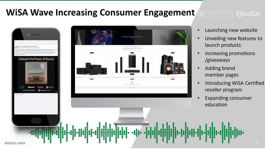 10 NASDAQ: WISA Driving the Expansion of the WiSA Market Expanding the WiSA Association to a consumer facing platform to drive retail sales: • Increasing consumer visits and consumer education of WiSA’s benefits • Expanding the WiSA category of products for the consumer, retailer, and brands • Lowering direct to consumer marketing costs when shared across brands
