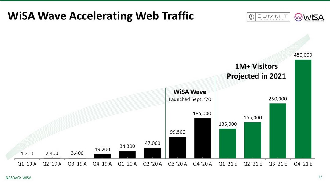 12 NASDAQ: WISA 1,200 2,400 3,400 19,200 34,300 47,000 99,500 185,000 135,000 165,000 250,000 450,000 Q1 '19 A Q2 '19 A Q3 '19 A Q4 '19 A Q1 '20 A Q2 '20 A Q3 '20 A Q4 '20 A Q1 '21 E Q2 '21 E Q3 '21 E Q4 '21 E 1M+ Visitors Projected in 2021 WiSA Wave Launched Sept. ‘20 WiSA Wave Accelerating Web Traffic