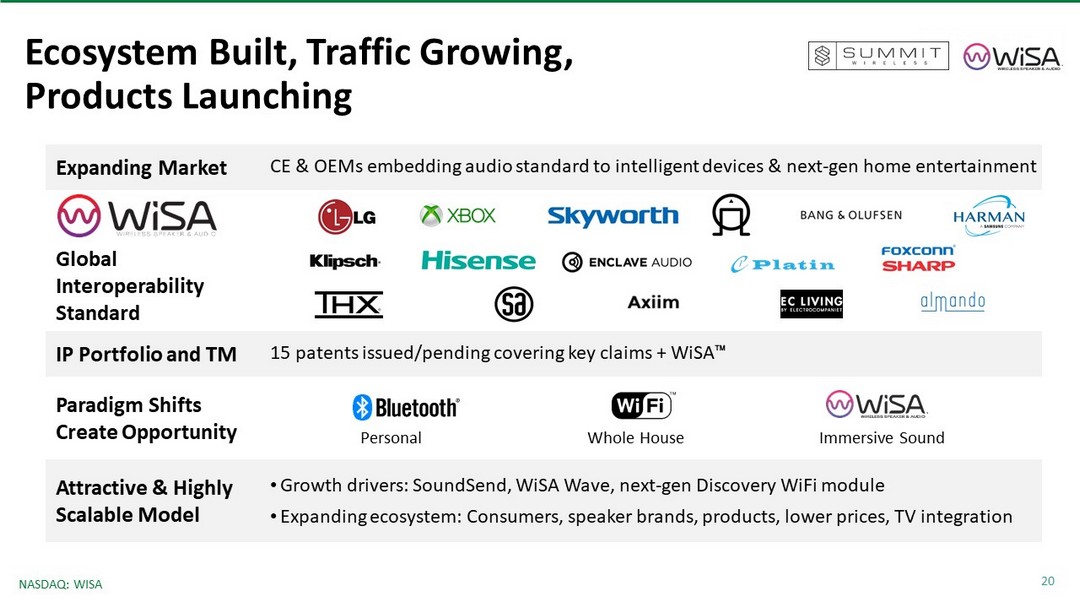 The New Industry Standard for Immersive Wireless Sound NASDAQ: WISA Summit Wireless Technologies Q4 2020 Results: March 12, 2021