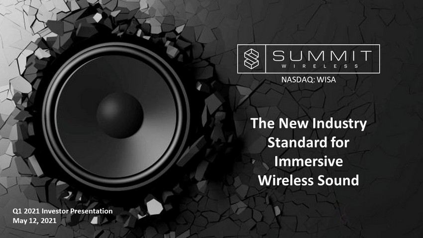 The New Industry Standard for Immersive Wireless Sound NASDAQ: WISA Q1 2021 Investor Presentation May 12, 2021