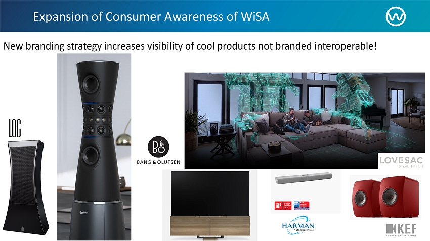 Expansion of Consumer Awareness of WiSA New branding strategy increases visibility of cool products not branded interoperable!