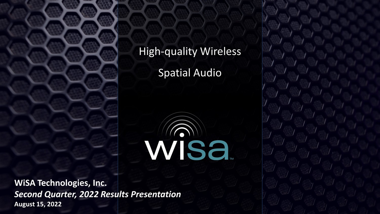 High - quality Wireless Spatial Audio WiSA Technologies, Inc. Second Quarter, 2022 Results Presentation August 15, 2022