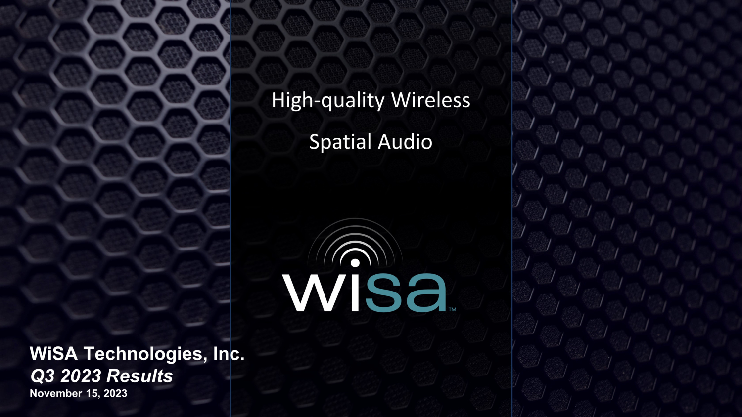 High - quality Wireless Spatial Audio WiSA Technologies, Inc. Q3 2023 Results November 15, 2023