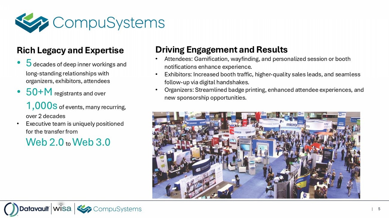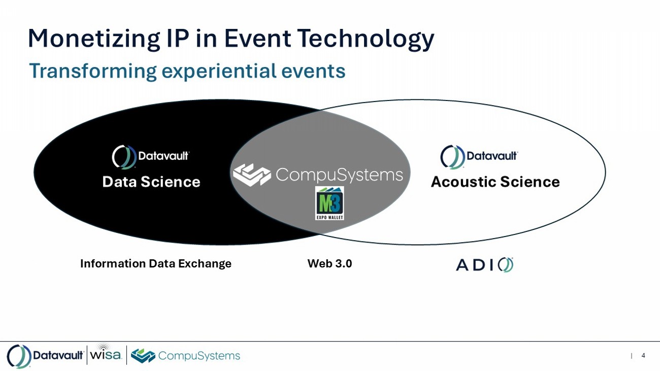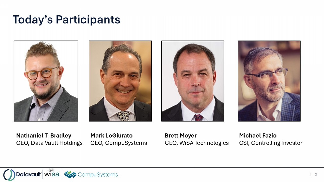 | 3 Today’s Participants Michael Fazio CSI, Controlling Investor Brett Moyer CEO, WiSA Technologies Mark LoGiurato CEO, CompuSystems Nathaniel T. Bradley CEO, Data Vault Holdings