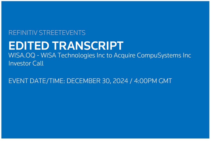 DECEMBER 30, 2024 / 4:00PM, WISA.OQ - WiSA Technologies Inc to Acquire CompuSystems Inc Investor Call