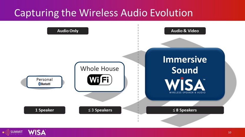 10 Personal Whole House Immersive Sound Capturing the Wireless Audio Evolution Audio Only Audio & Video 1 Speaker ≤ 8 Speakers ≤ 3 Speakers