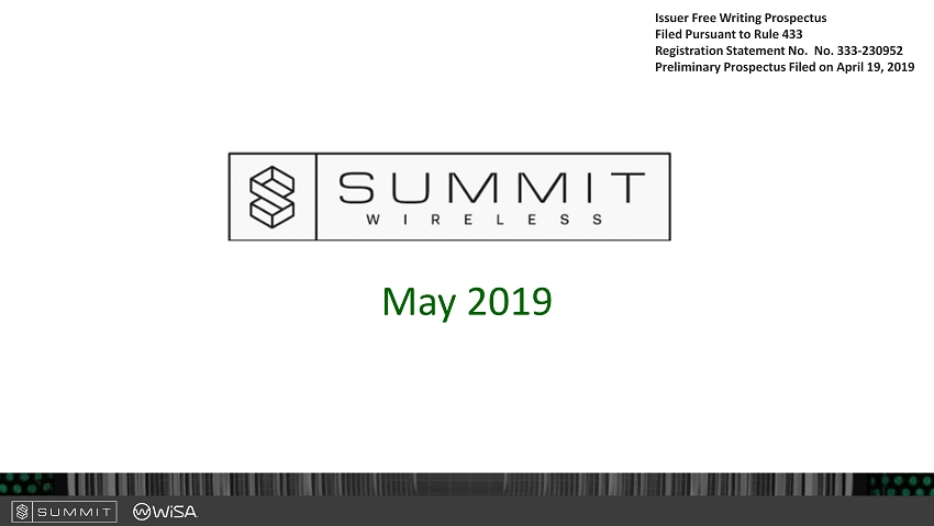 Free Writing Prospectus Disclosure • Issuer Free Writing Prospectus Issued Pursuant to SEC Rule 433 • This free writing prospectus relates to the proposed public offering of common stock of Summit Wireless Technologies, Inc. (the “Company”), together with the underwriter’s warrant to purchase common stock and common stock underlying such warrant, all of which are being registered on a Registration Statement on Form S - 1 (No. 333 - 230952) (the “Registration Statement”). This free writing prospectus should be read together with the preliminary prospectus dated April 19, 2019, included in that Registration Statement, which can be accessed through the following link: • https://www.sec.gov/Archives/ edgar /data/1682149/000114420419020338/ tv519148_s1.htm • Before you invest, you should read the preliminary prospectus in that registration statement (including the risk factors described therein) and other documents the Company has filed with the SEC for more complete information about the Company and this offering. You may get these documents for free by visiting EDGAR on the SEC Web site at www.sec.gov. Alternatively, the Company, any underwriter or any dealer participating in the offering will arrange to send you the prospectus if you request it by calling: 855 - 288 - 2539. 2