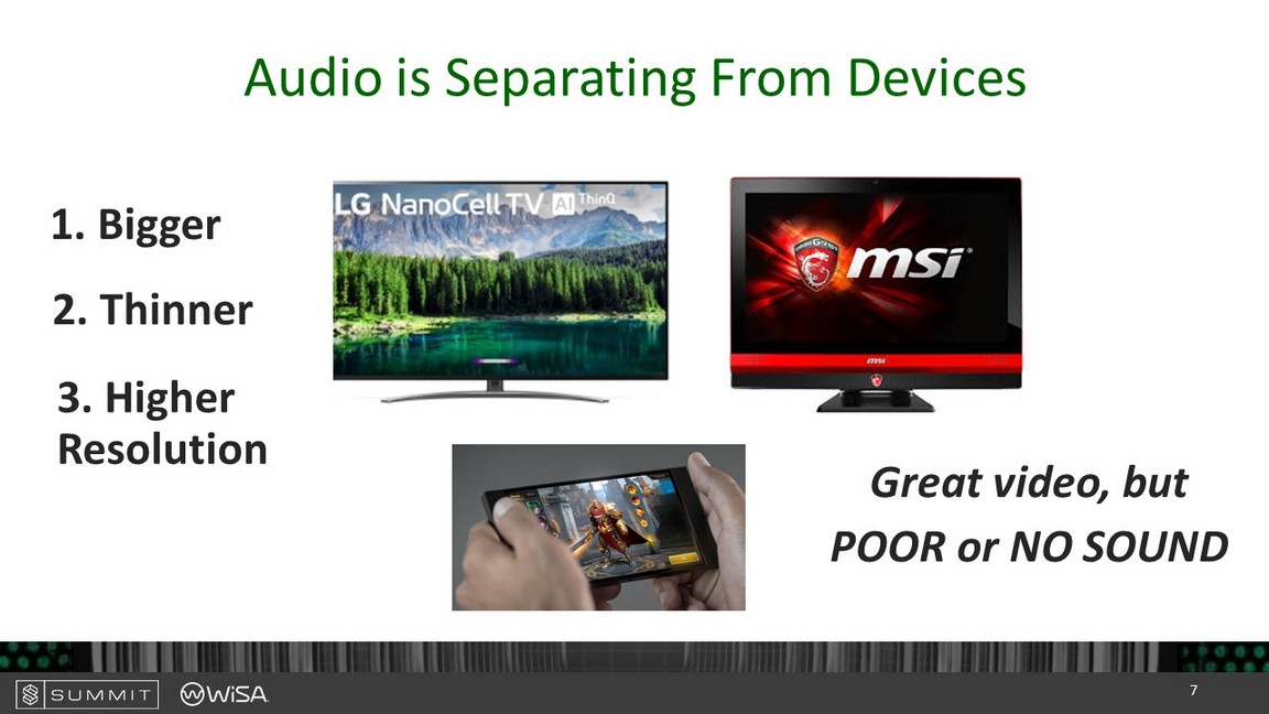 Audio is Separating From Devices 1. Bigger 2. Thinner 3. Higher Resolution Great video, but POOR or NO SOUND 7