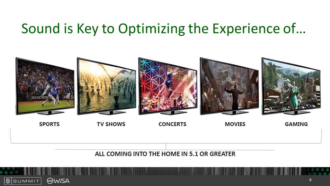 Sound is Key to Optimizing the Experience of… SPORTS TV SHOWS CONCERTS MOVIES GAMING ALL COMING INTO THE HOME IN 5.1 OR GREATER 8