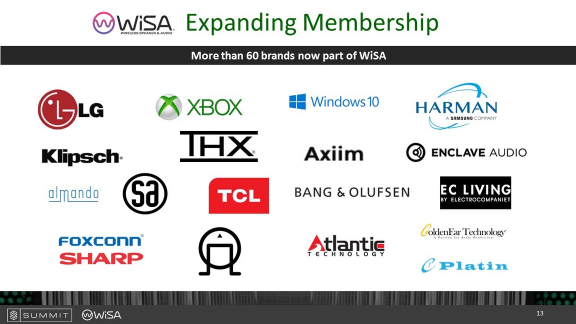Expanding Membership More than 60 brands now part of WiSA 13
