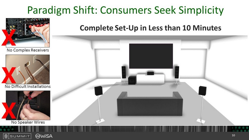 Paradigm Shift: Consumers Seek Simplicity No Complex Receivers No Difficult Installations No Speaker Wires X X Complete Set - Up in Less than 10 Minutes X 10