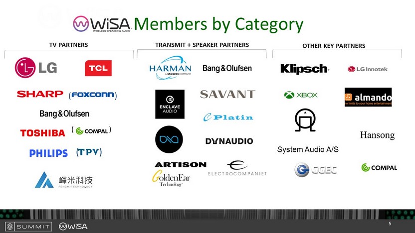 ( ) ( ) Expanding Membership More than 60 brands now part of WiSA 4
